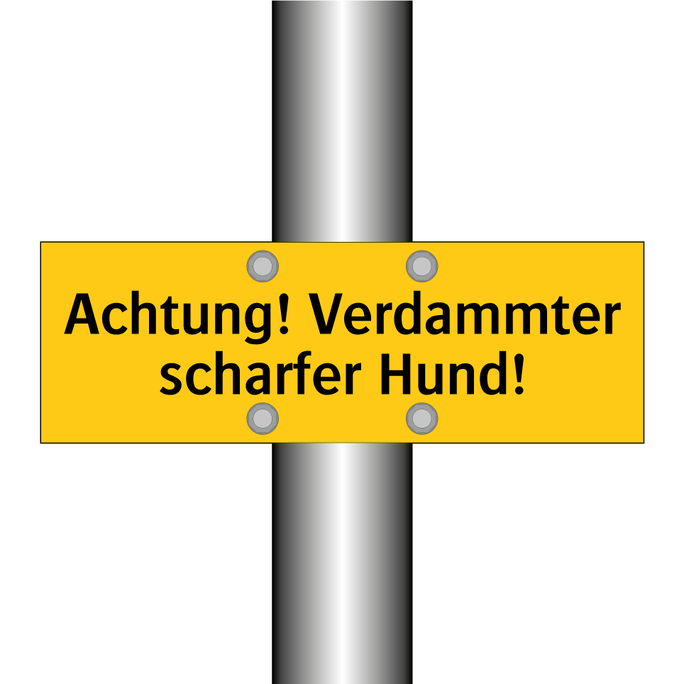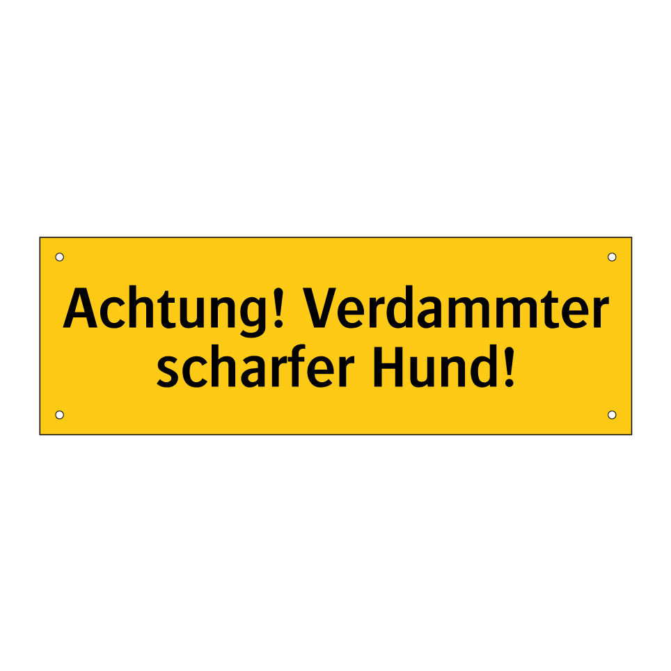 Warnschild mit dem Text Achtung! Verdammter scharfer Hund!