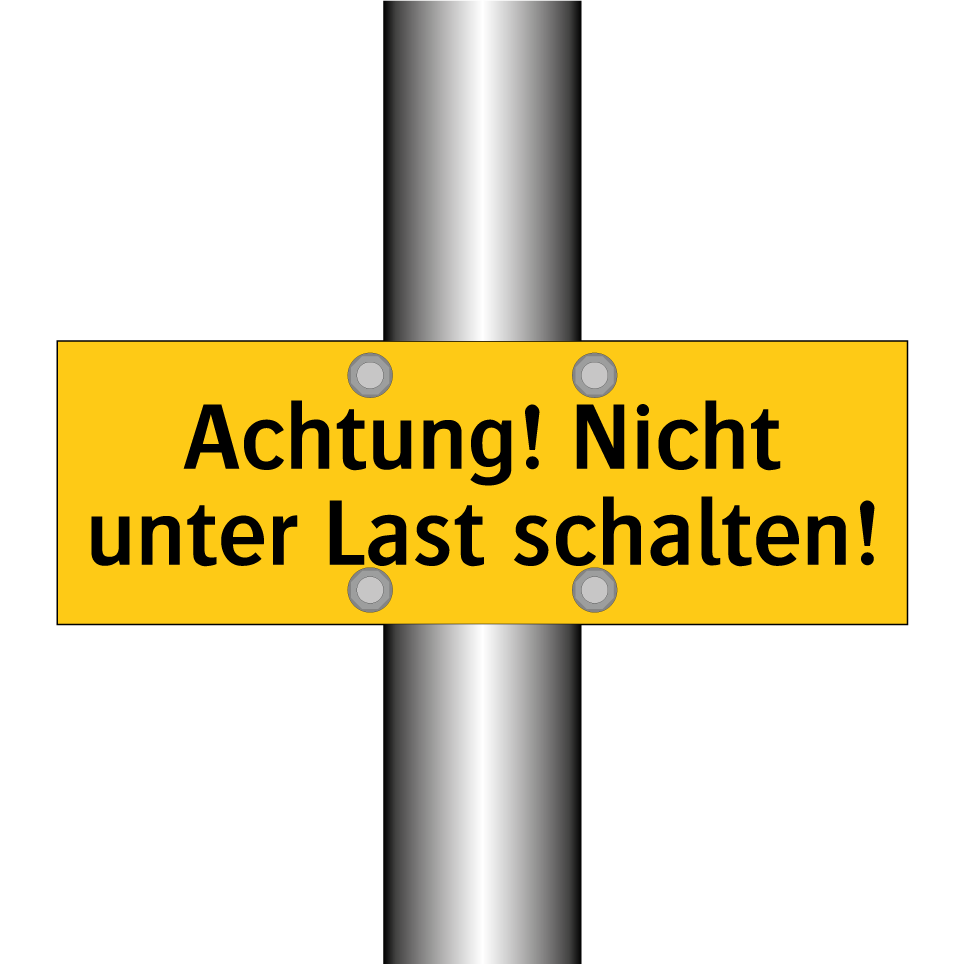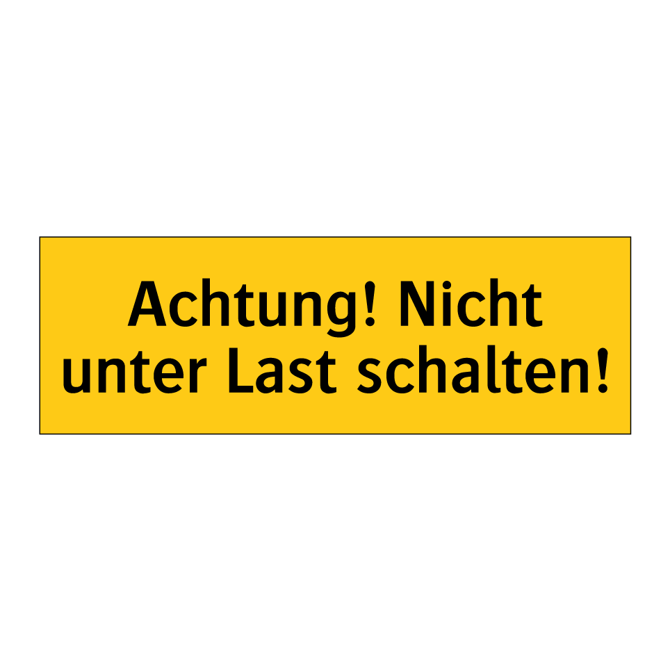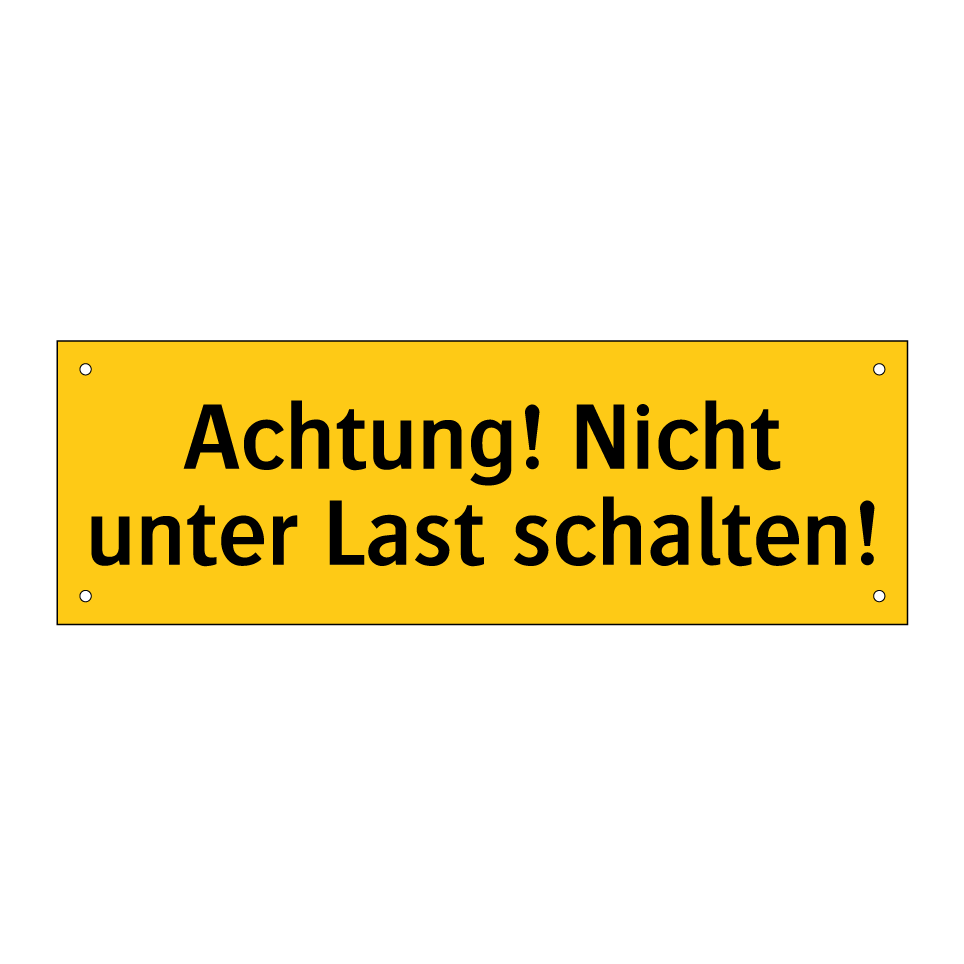 Warnschild mit dem Text Achtung! Nicht unter Last schalten!