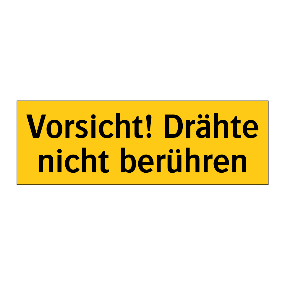 Warnschild mit dem Text Vorsicht! Drähte nicht berühren