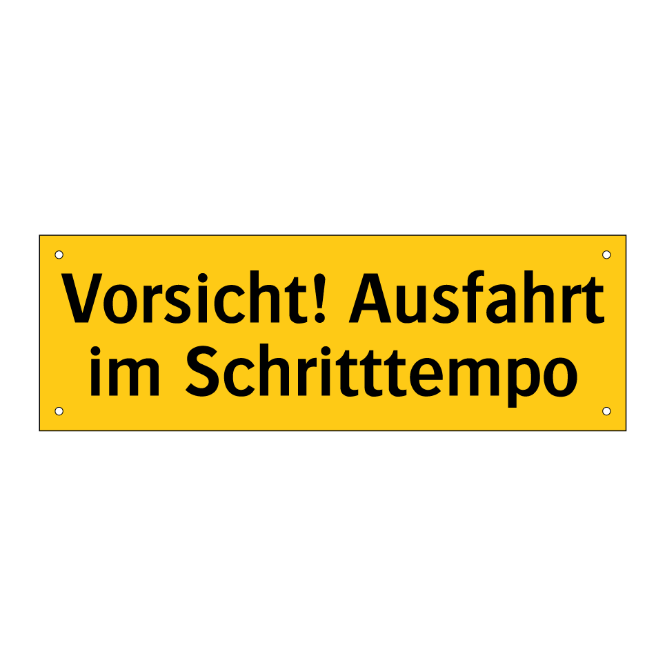 Warnschild mit dem Text Vorsicht! Ausfahrt im Schritttempo