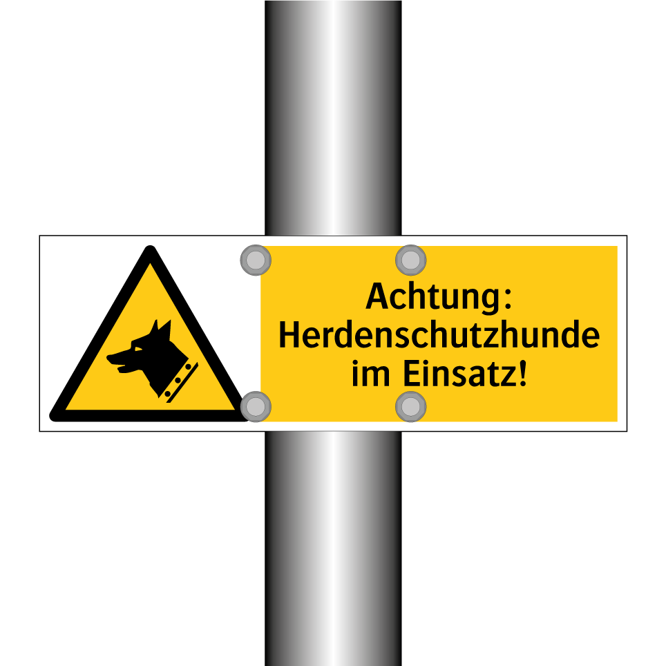Diese auffällige Warnschild mit gelbem Hintergrund und schwarzer Schrift ist ideal, um auf die Anwesenheit von Herdenschutzhunden hinzuweisen. Sie eignet sich hervorragend für den Einsatz in ländlichen Gebieten, auf Bauernhöfen oder in der Nähe von Weideflächen, wo Herdenschutzhunde zum Schutz von Nutztieren eingesetzt werden. Die klare Symbolik und der prägnante Text sorgen dafür, dass Passanten und Besucher sofort gewarnt werden. Platzieren Sie das Warnschild an Eingängen, Zäunen oder anderen strategischen Punkten, um die Sicherheit von Mensch und Tier zu gewährleisten. Diese Warnschilder sind ein unverzichtbares Element für jeden, der mit Herdenschutzhunden arbeitet.