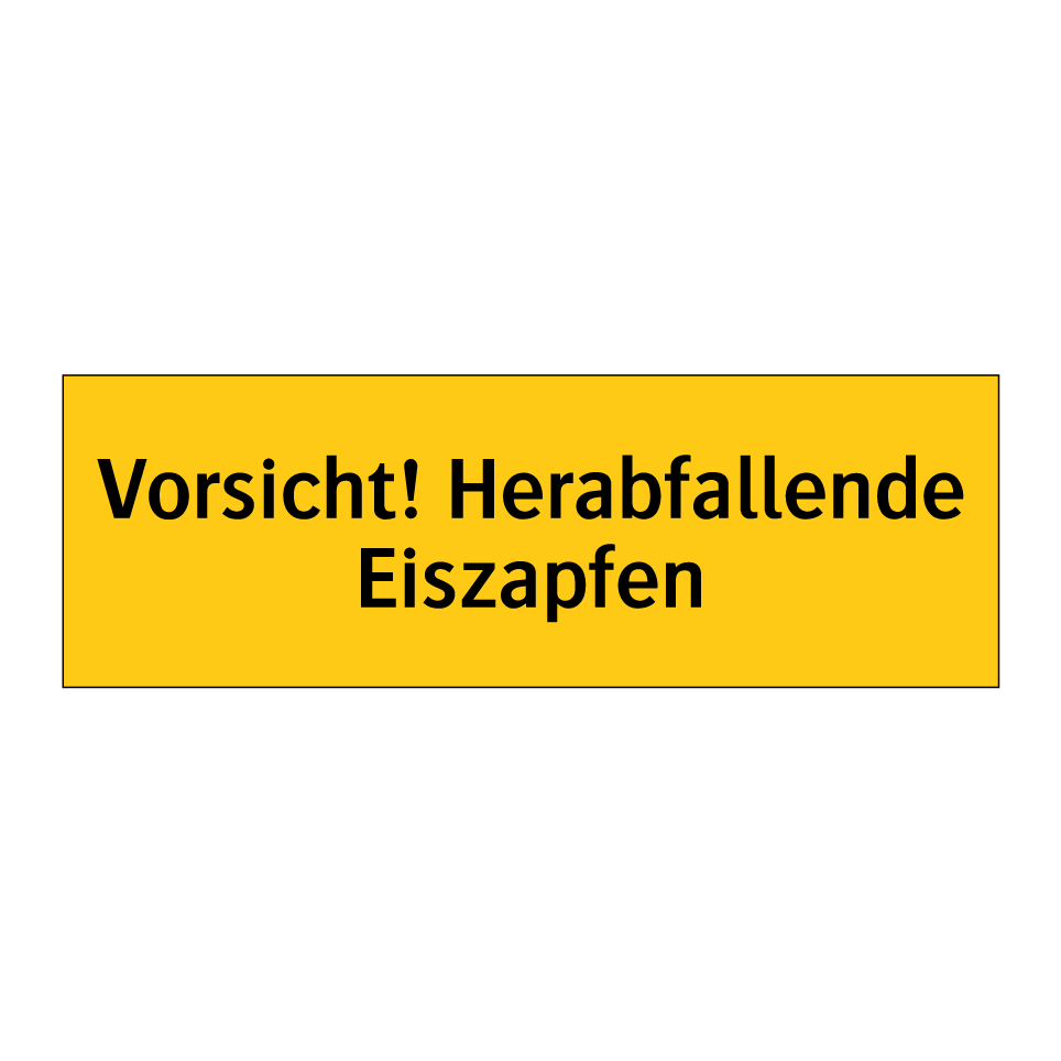 Warnschild mit dem Text Vorsicht! Herabfallende Eiszapfen