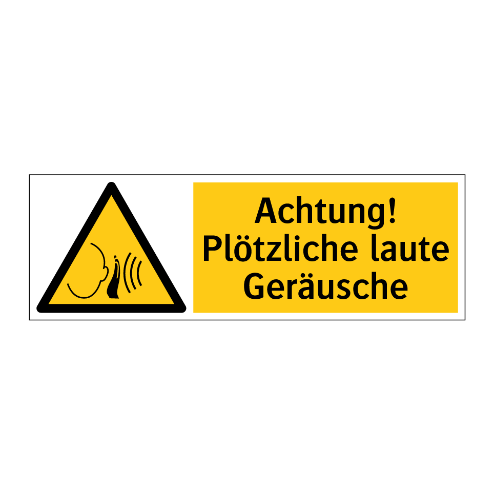 Warnschild mit dem Text Achtung! Plötzliche laute Geräusche