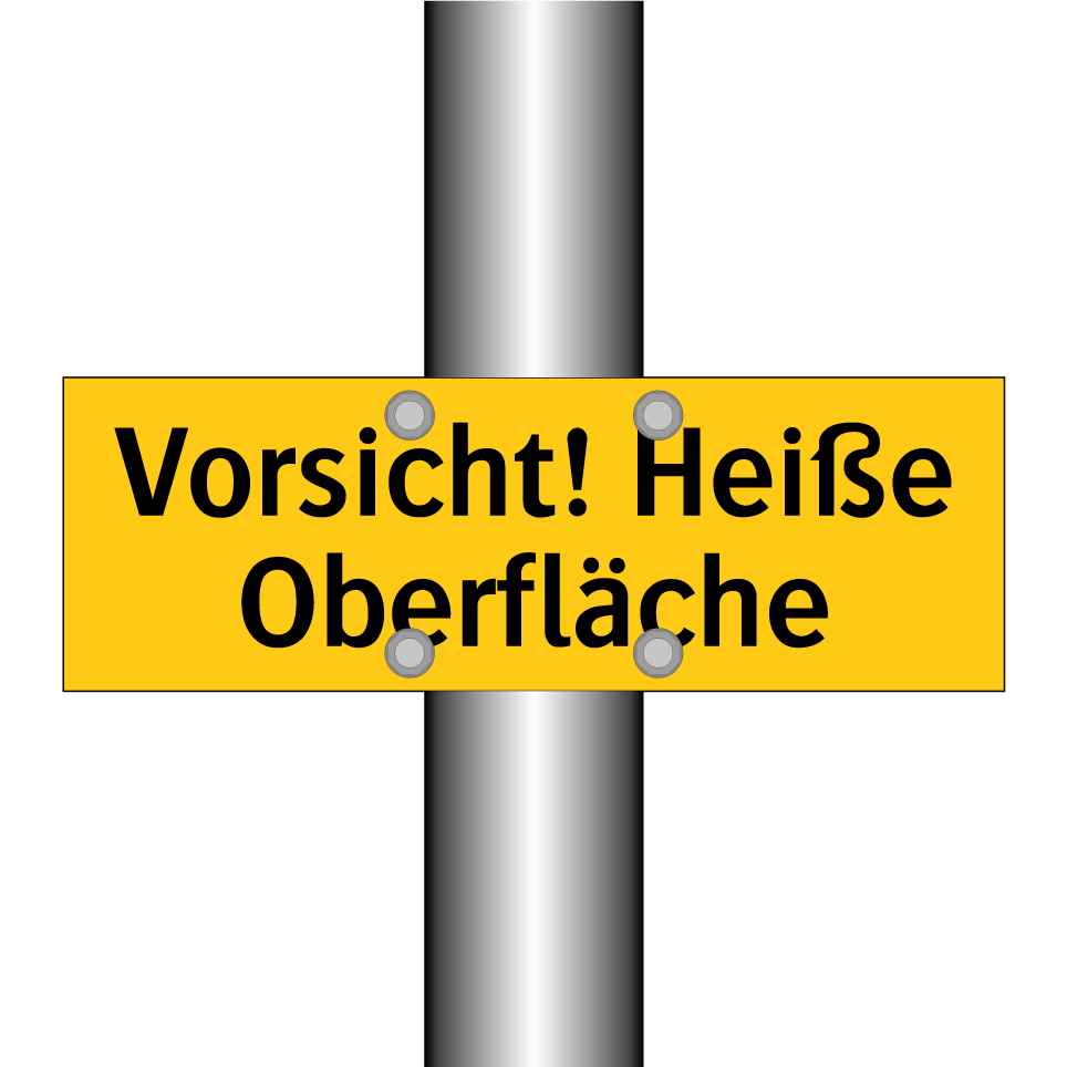 Warnschild mit dem Text Vorsicht! Heiße Oberfläche