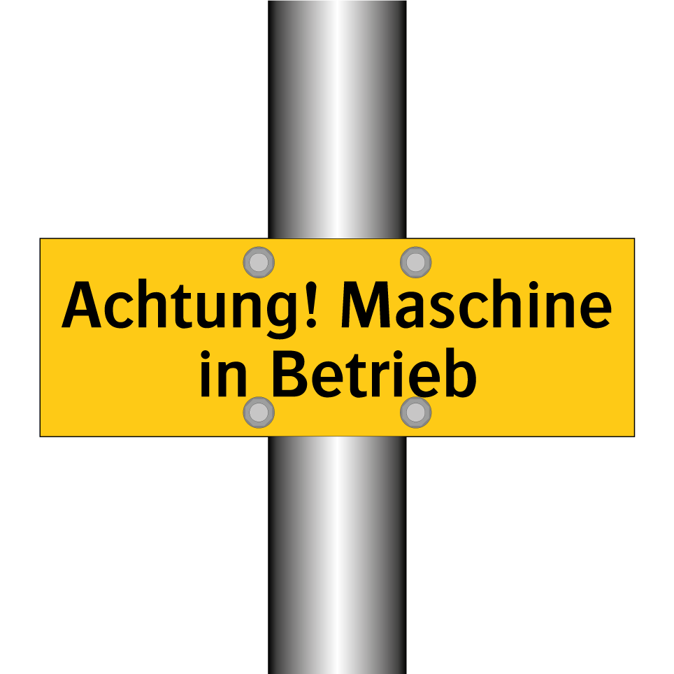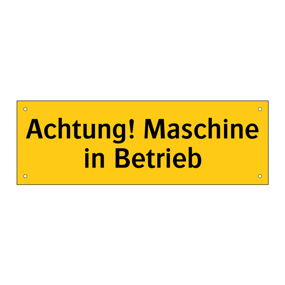 Warnschild mit dem Text Achtung! Maschine in Betrieb
