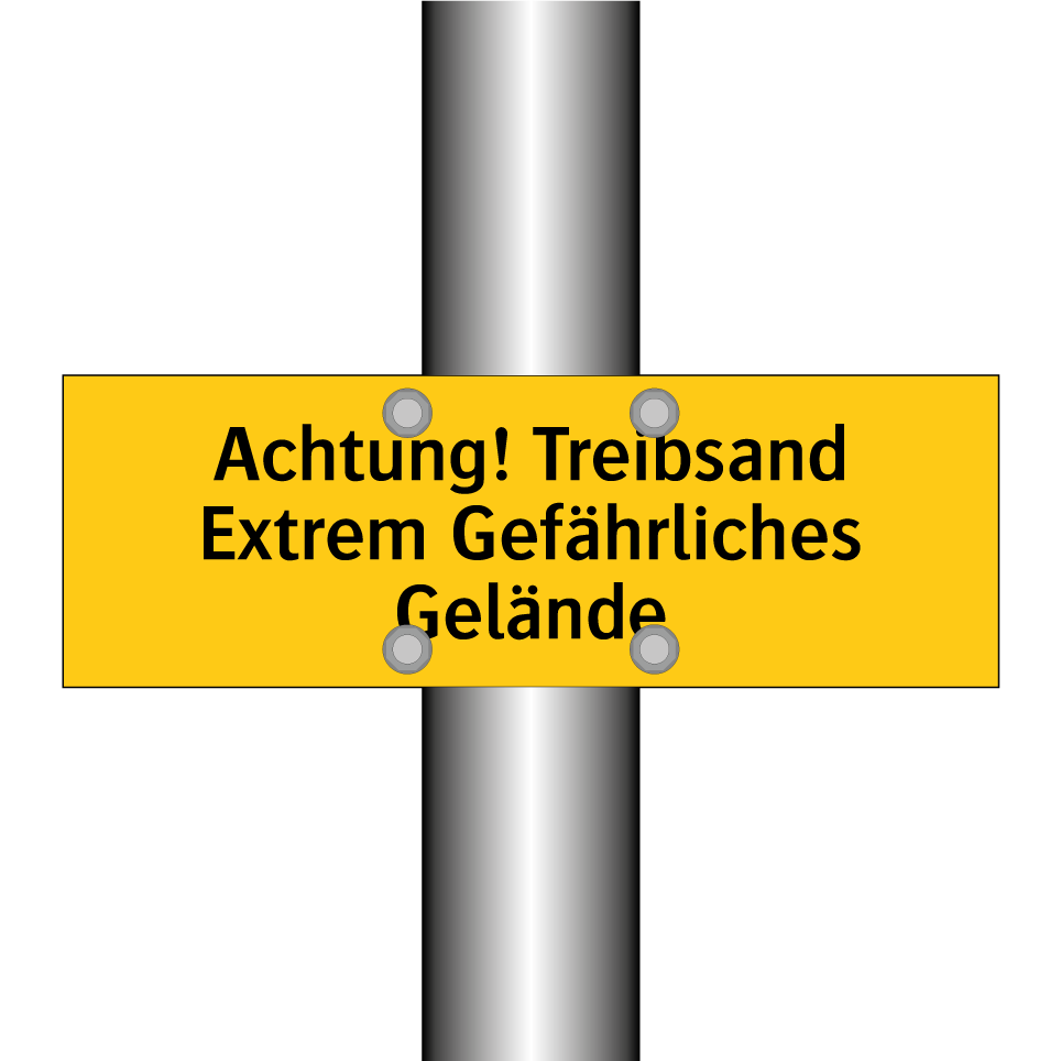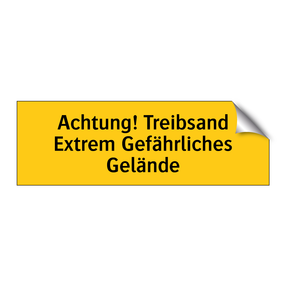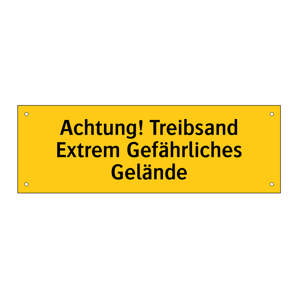 Warnschild mit dem Text Achtung! Treibsand Extrem Gefährliches Gelände