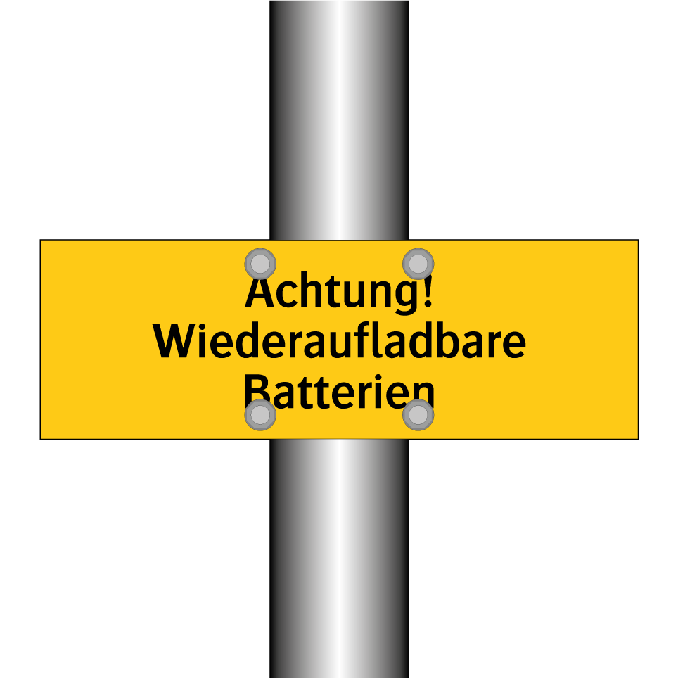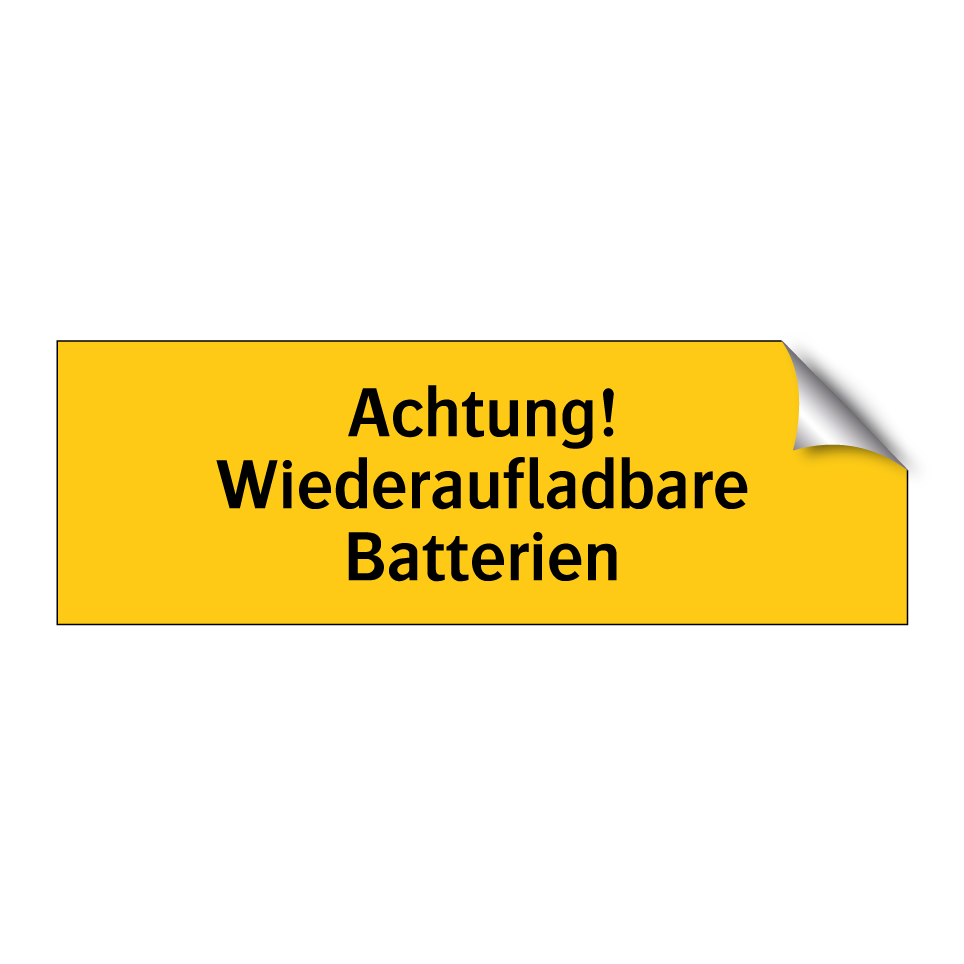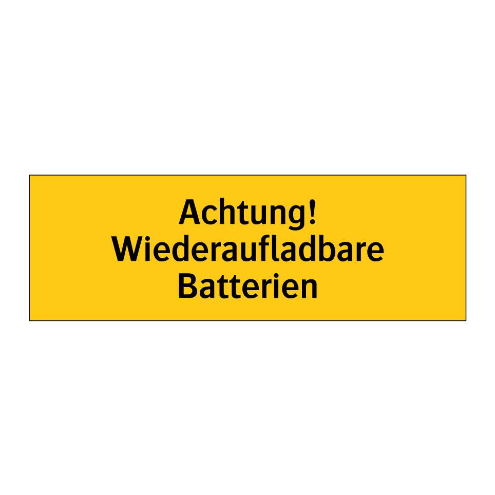 Warnschild mit dem Text Achtung! Wiederaufladbare Batterien
