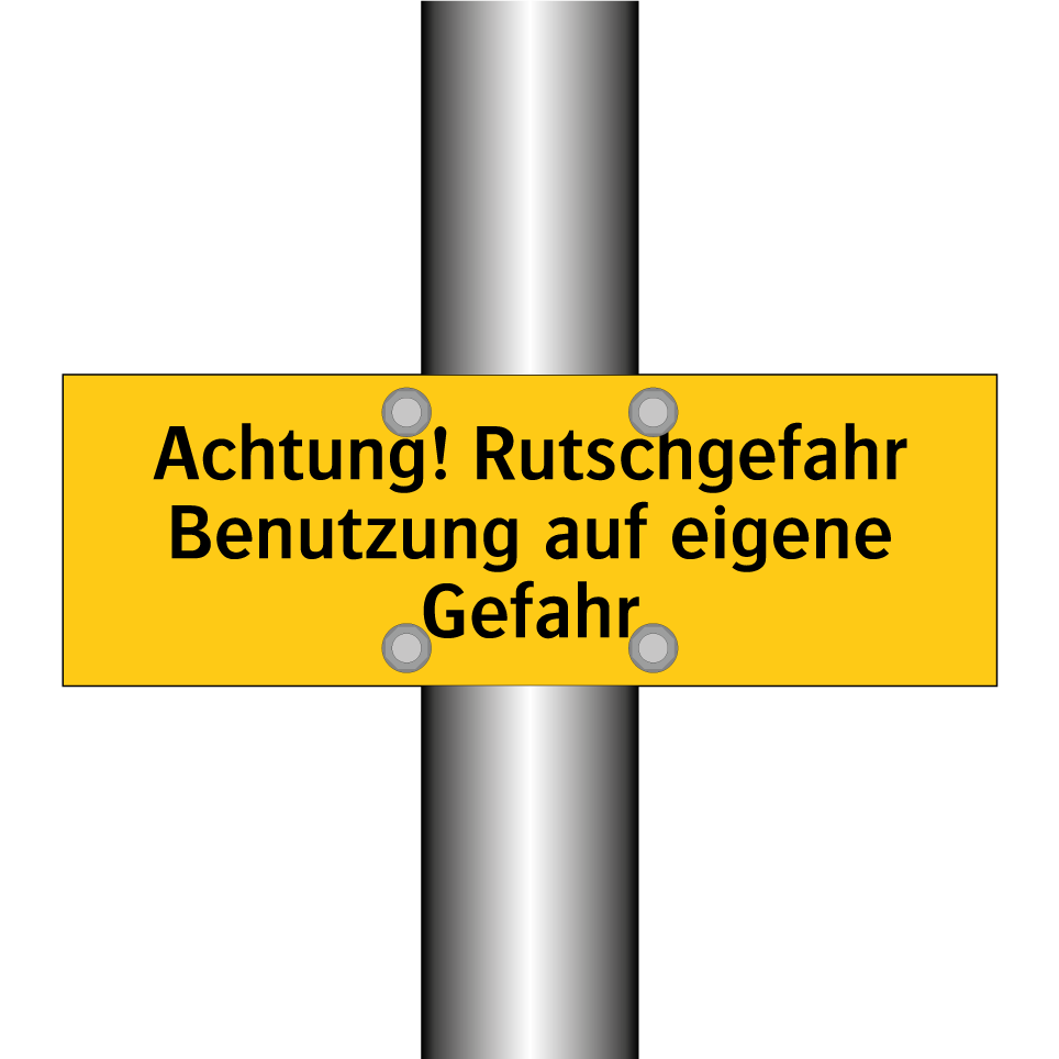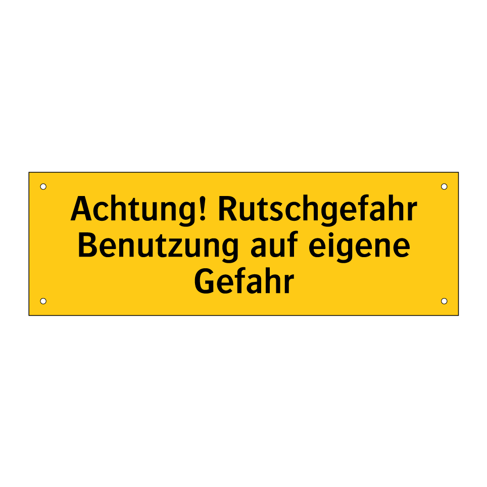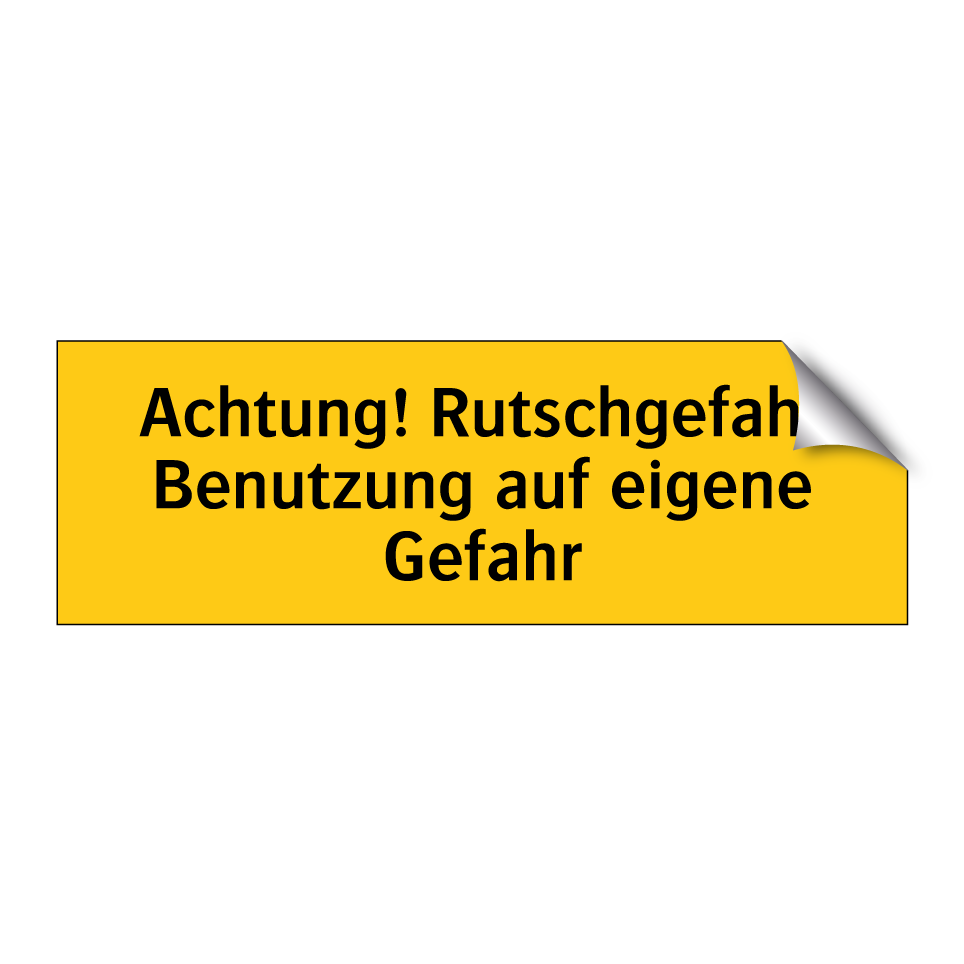 Warnschild mit dem Text Achtung! Rutschgefahr Benutzung auf eigene Gefahr