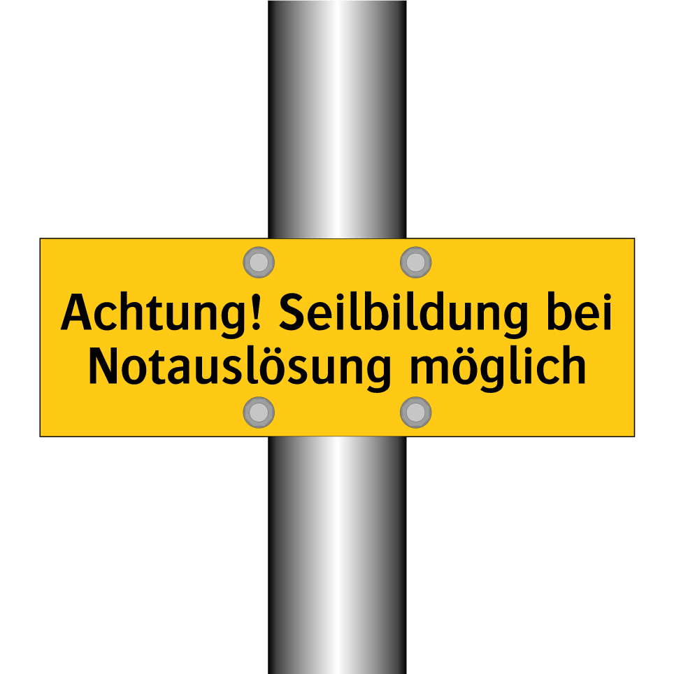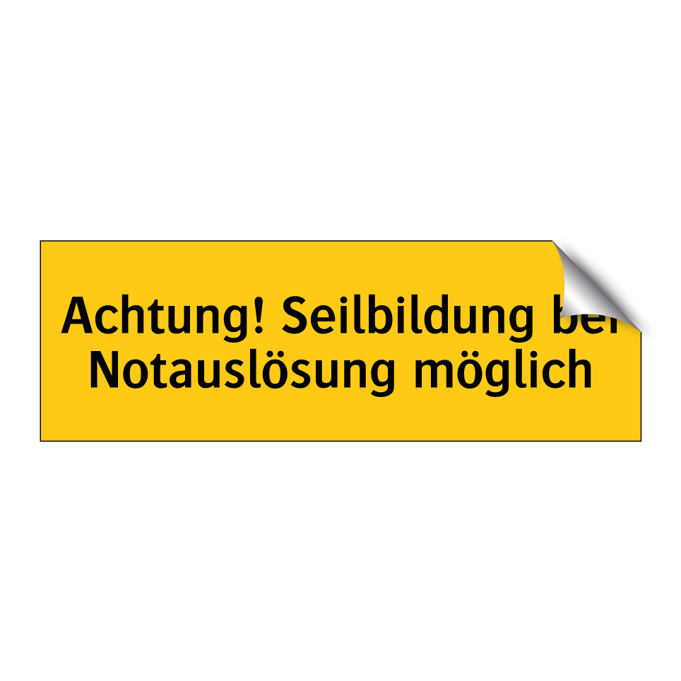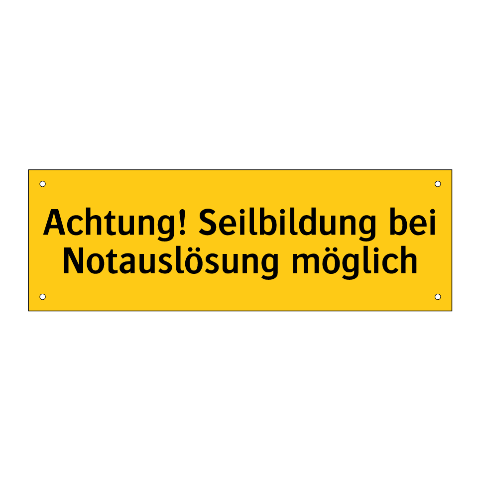 Warnschild mit dem Text Achtung! Seilbildung bei Notauslösung möglich