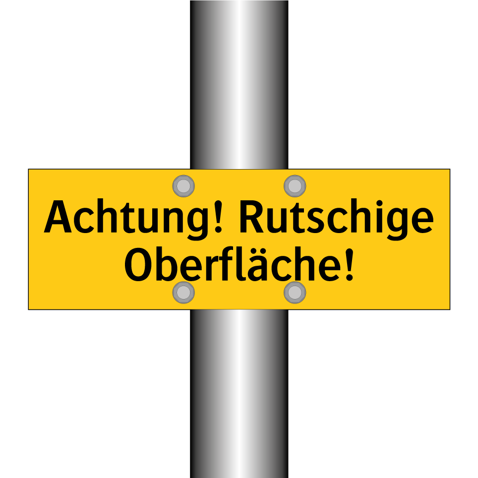 Warnschild mit dem Text Achtung! Rutschige Oberfläche!