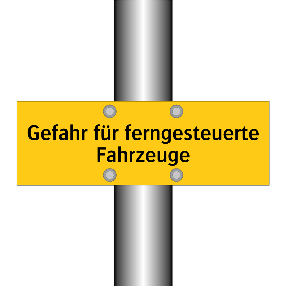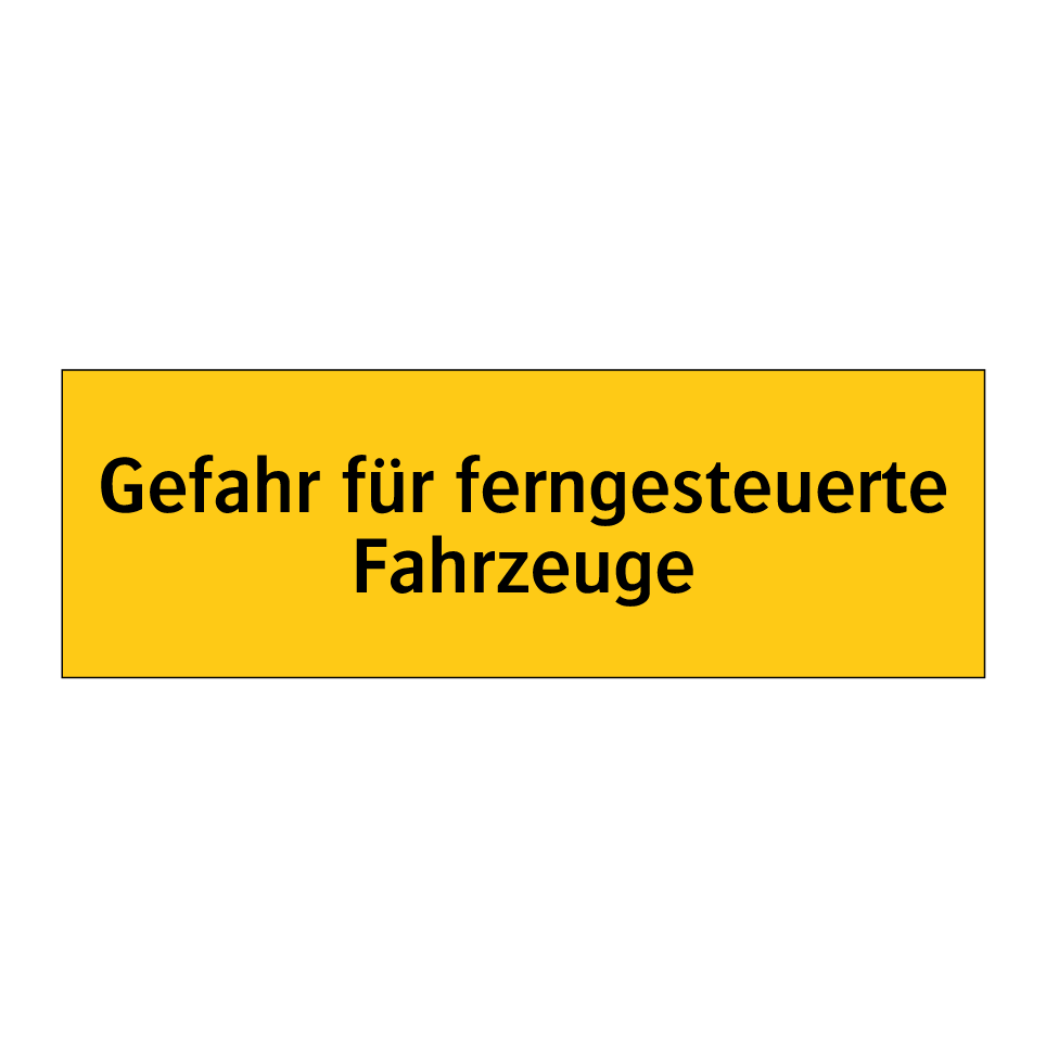 Warnschild mit dem Text Gefahr für ferngesteuerte Fahrzeuge
