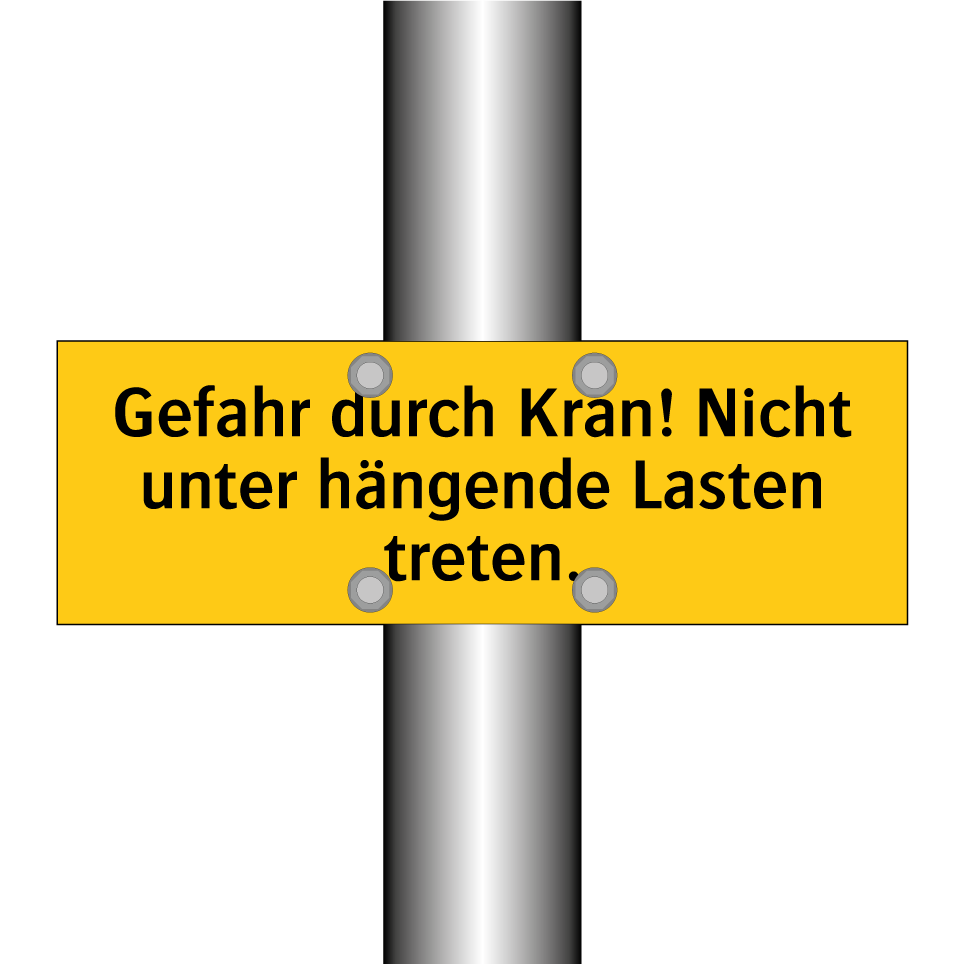 Warnschild mit dem Text Gefahr durch Kran! Nicht unter hängende Lasten treten.