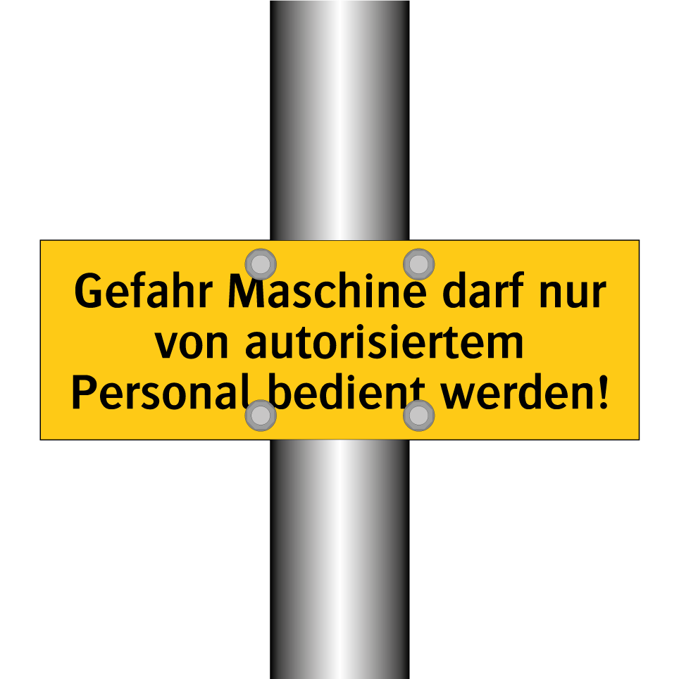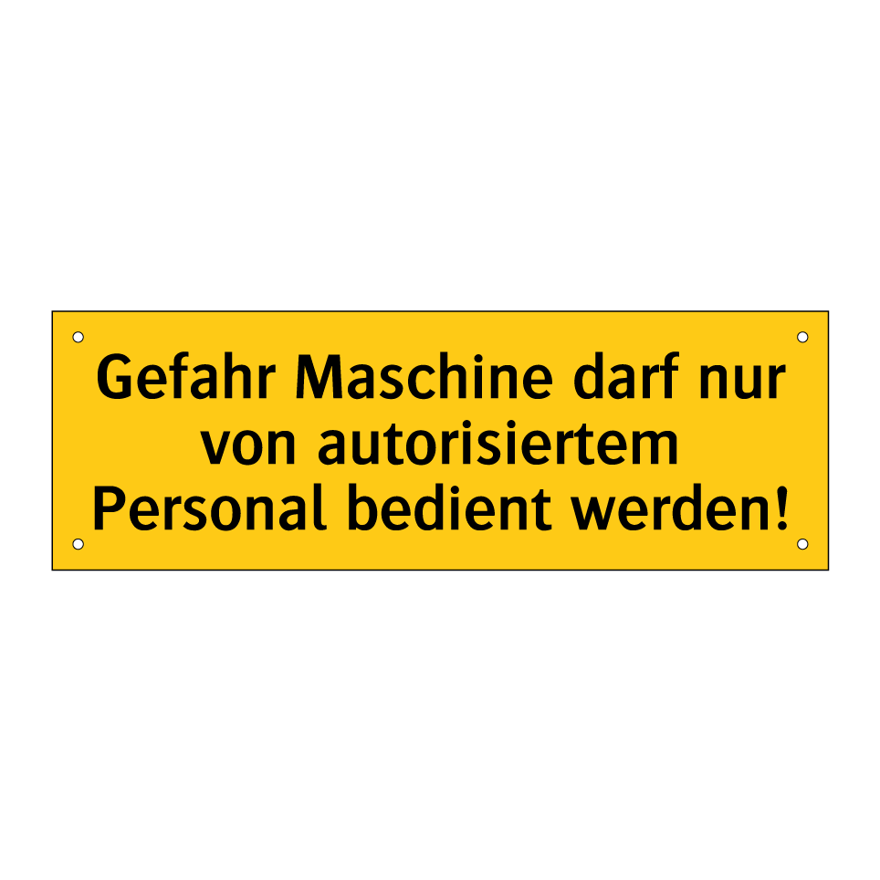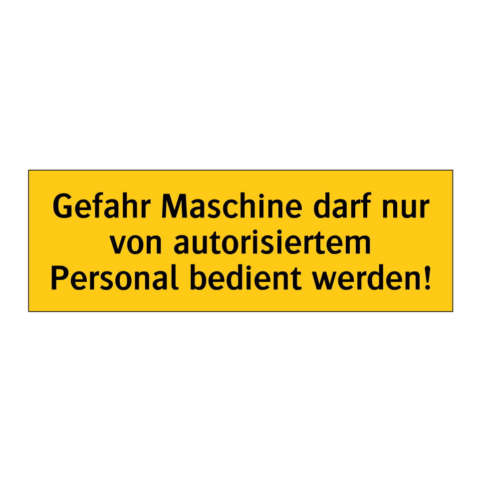 Warnschild mit dem Text Gefahr Maschine darf nur von autorisiertem Personal bedient werden!