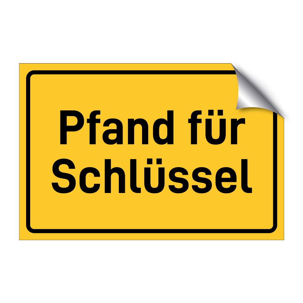 Hinweisschild mit dem Text Pfand für Schlüssel