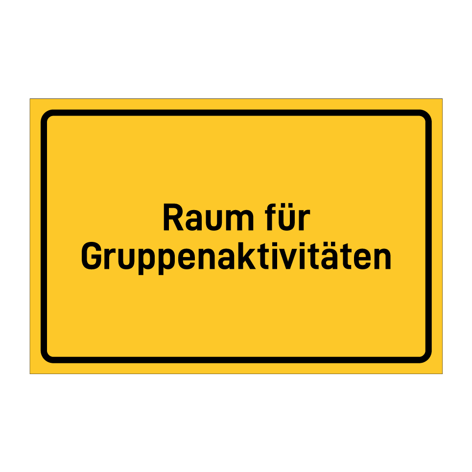 Hinweisschild mit dem Text Raum für Gruppenaktivitäten