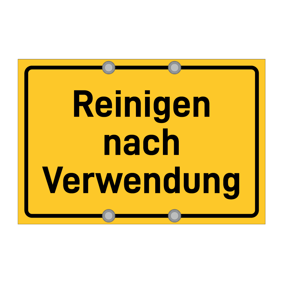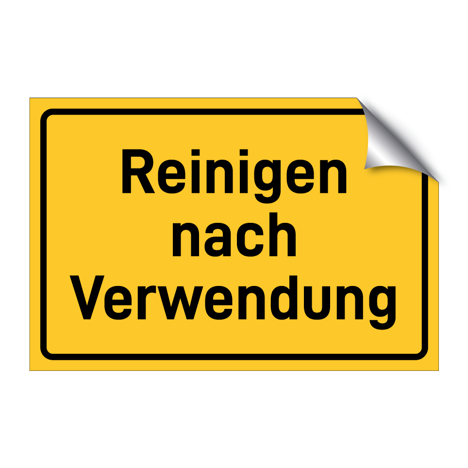 Hinweisschild mit dem Text Reinigen nach Verwendung