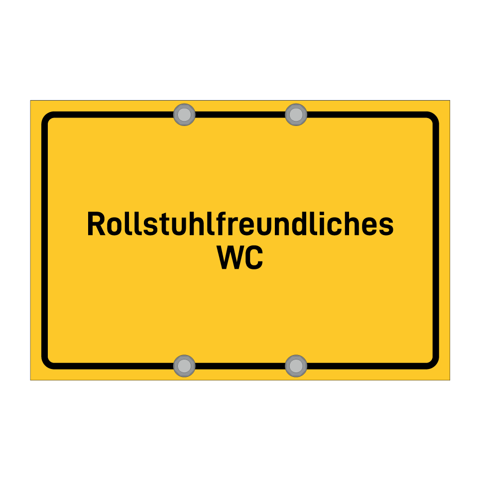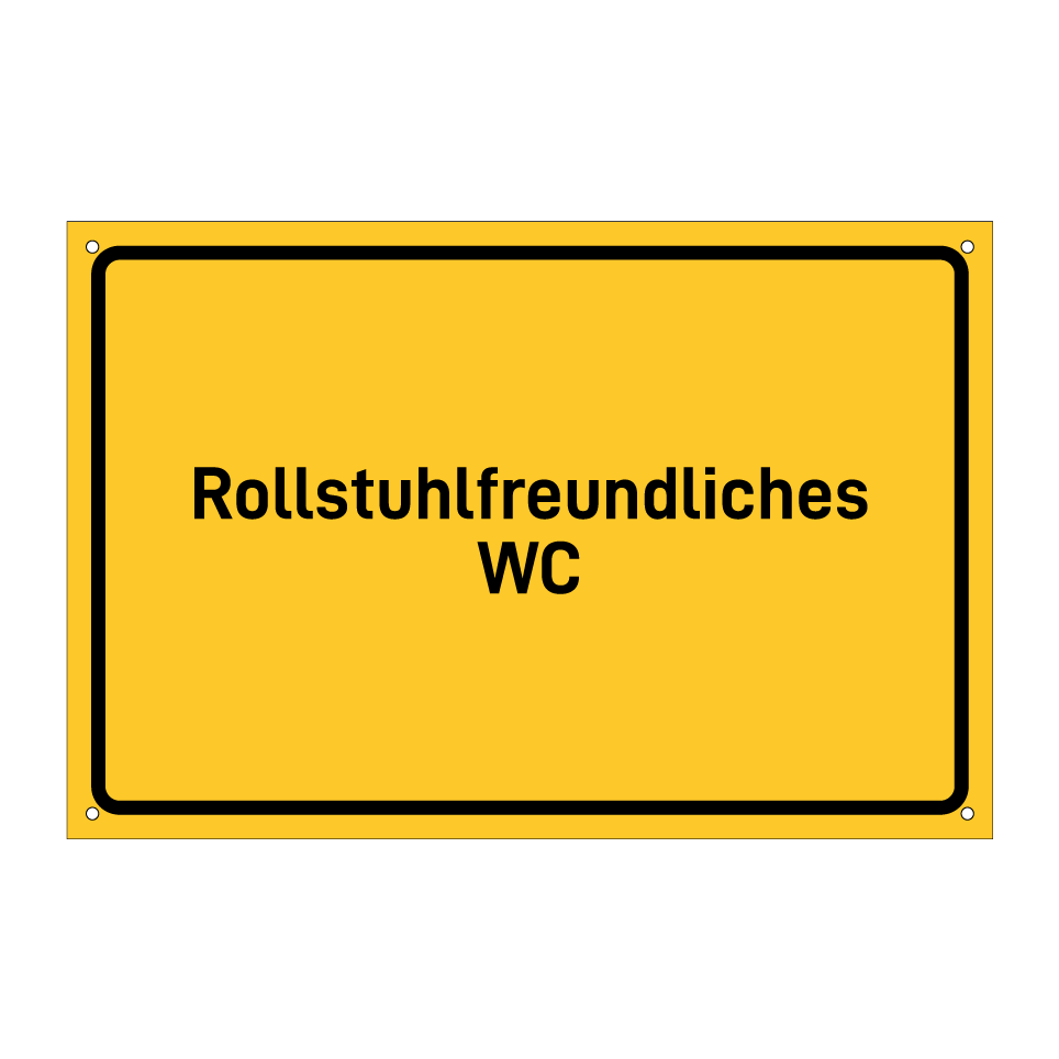 Hinweisschild mit dem Text Rollstuhlfreundliches WC