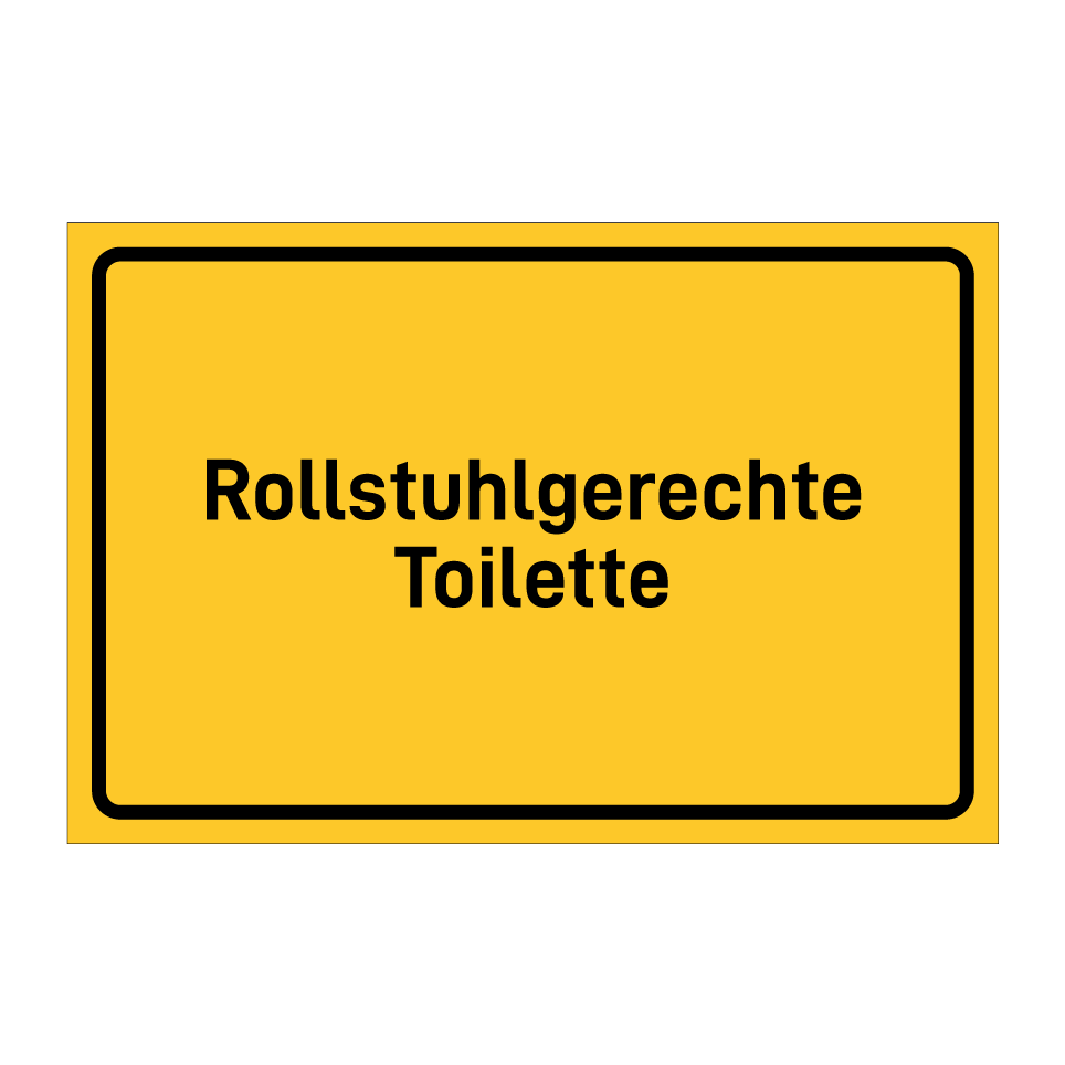 Hinweisschild mit dem Text Rollstuhlgerechte Toilette