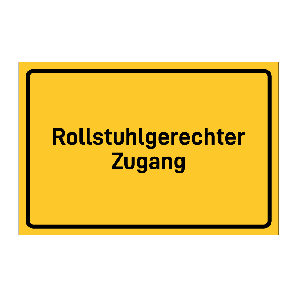 Hinweisschild mit dem Text Rollstuhlgerechter Zugang
