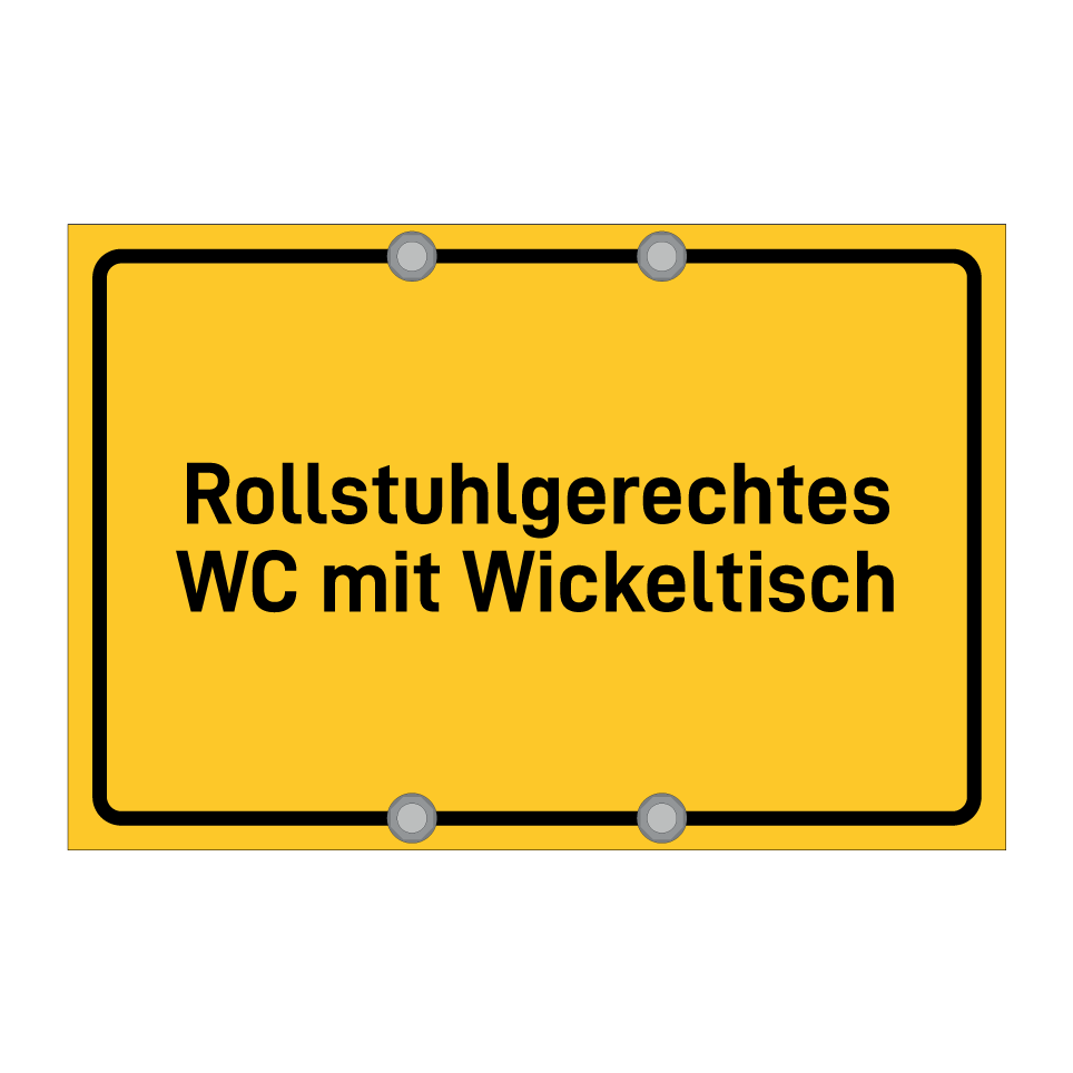 Hinweisschild mit dem Text Rollstuhlgerechtes WC mit Wickeltisch