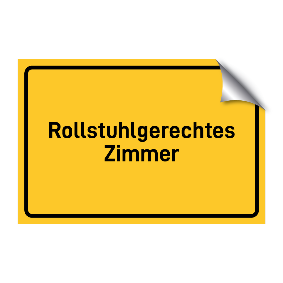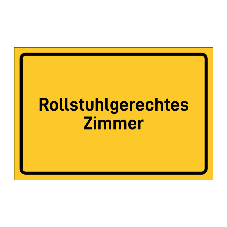 Hinweisschild mit dem Text Rollstuhlgerechtes Zimmer