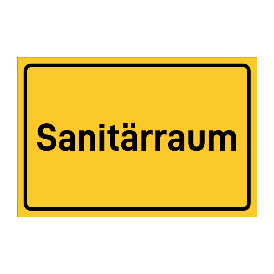Hinweisschild mit dem Text Sanitärraum