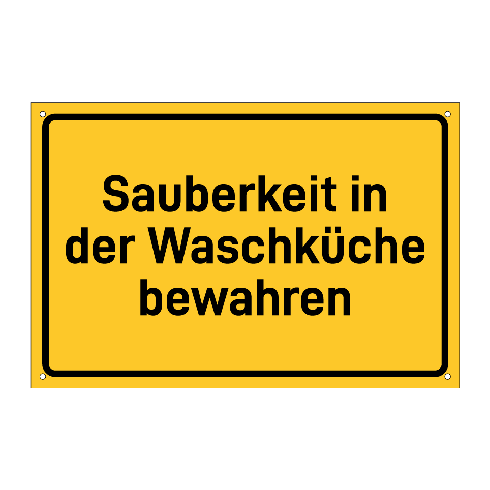 Hinweisschild mit dem Text Sauberkeit in der Waschküche bewahren