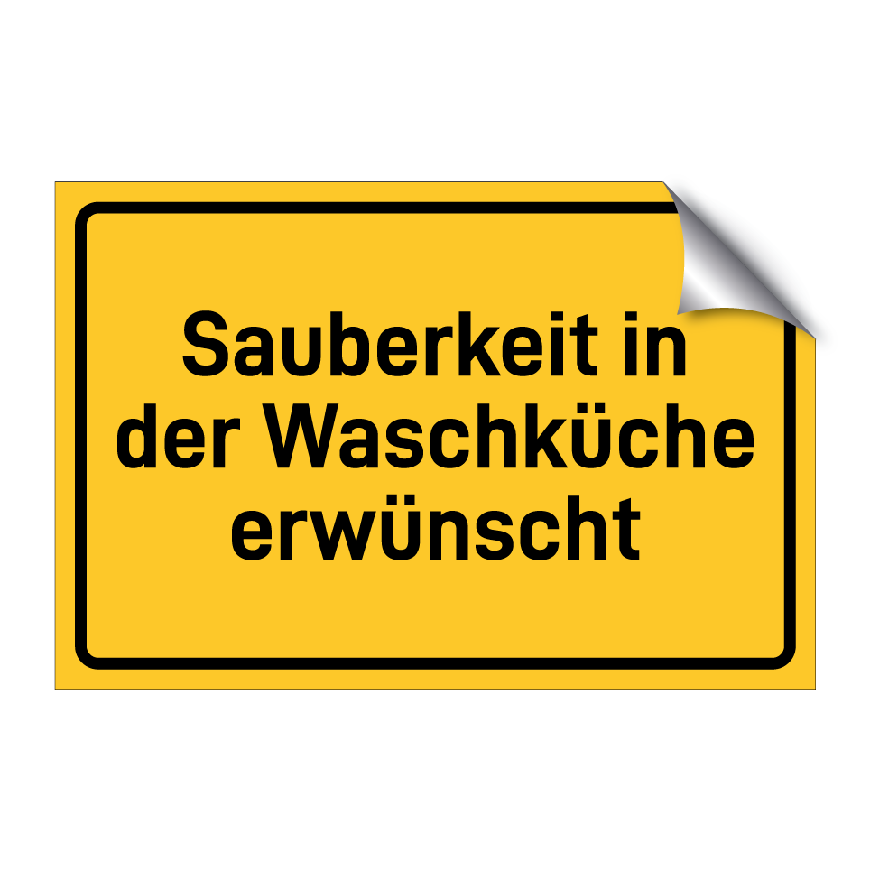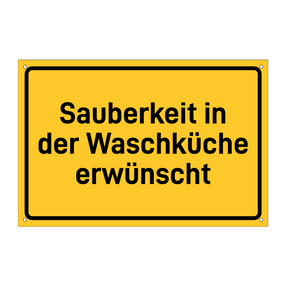 Hinweisschild mit dem Text Sauberkeit in der Waschküche erwünscht