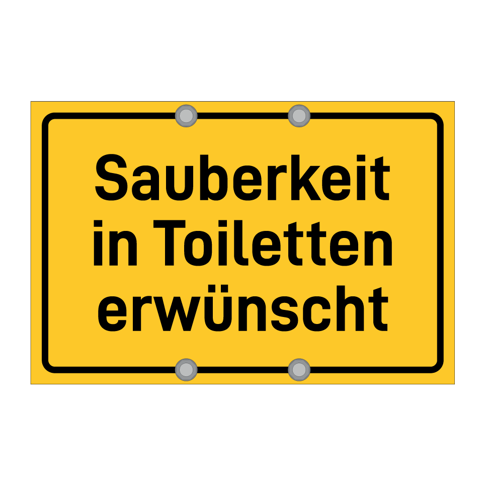 Hinweisschild mit dem Text Sauberkeit in Toiletten erwünscht