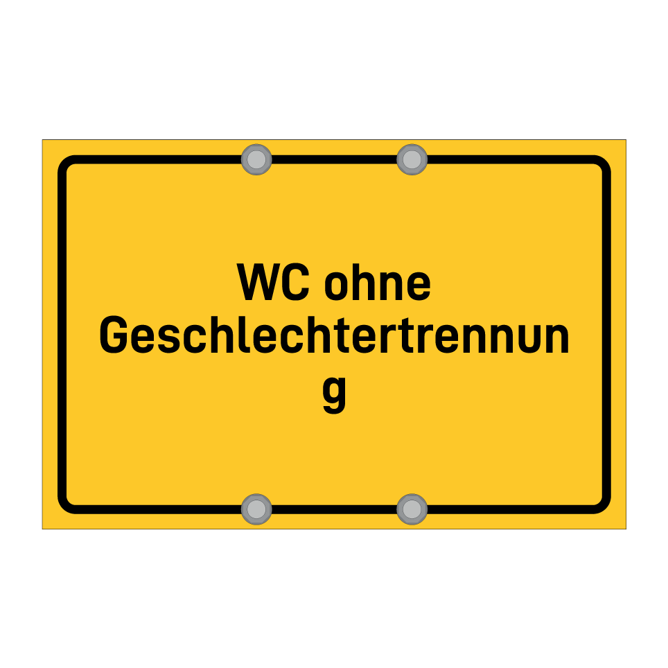 Hinweisschild mit dem Text WC ohne Geschlechtertrennung