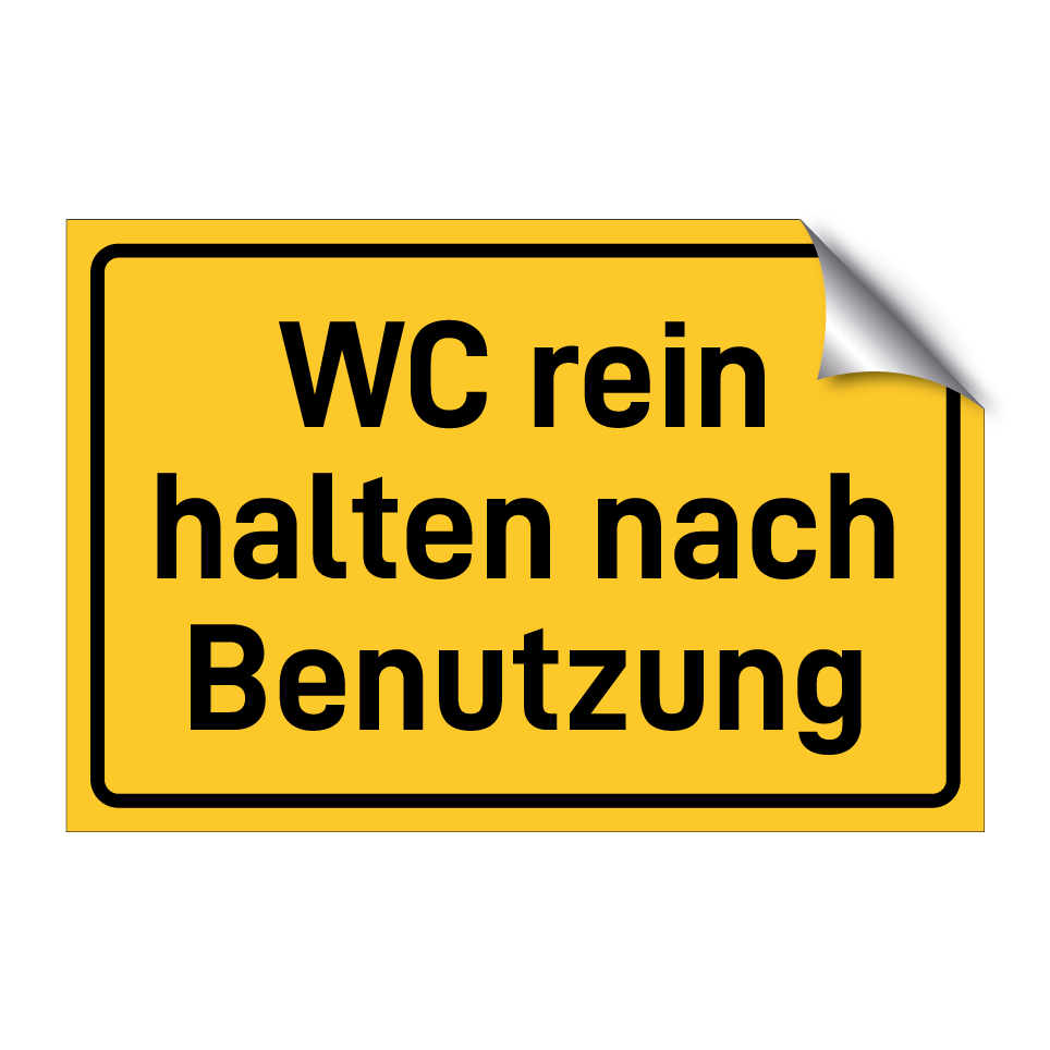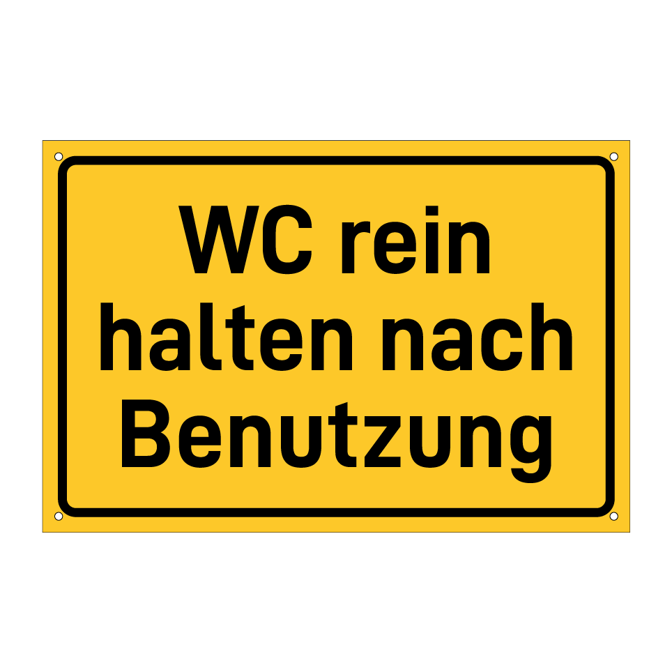 Hinweisschild mit dem Text WC rein halten nach Benutzung