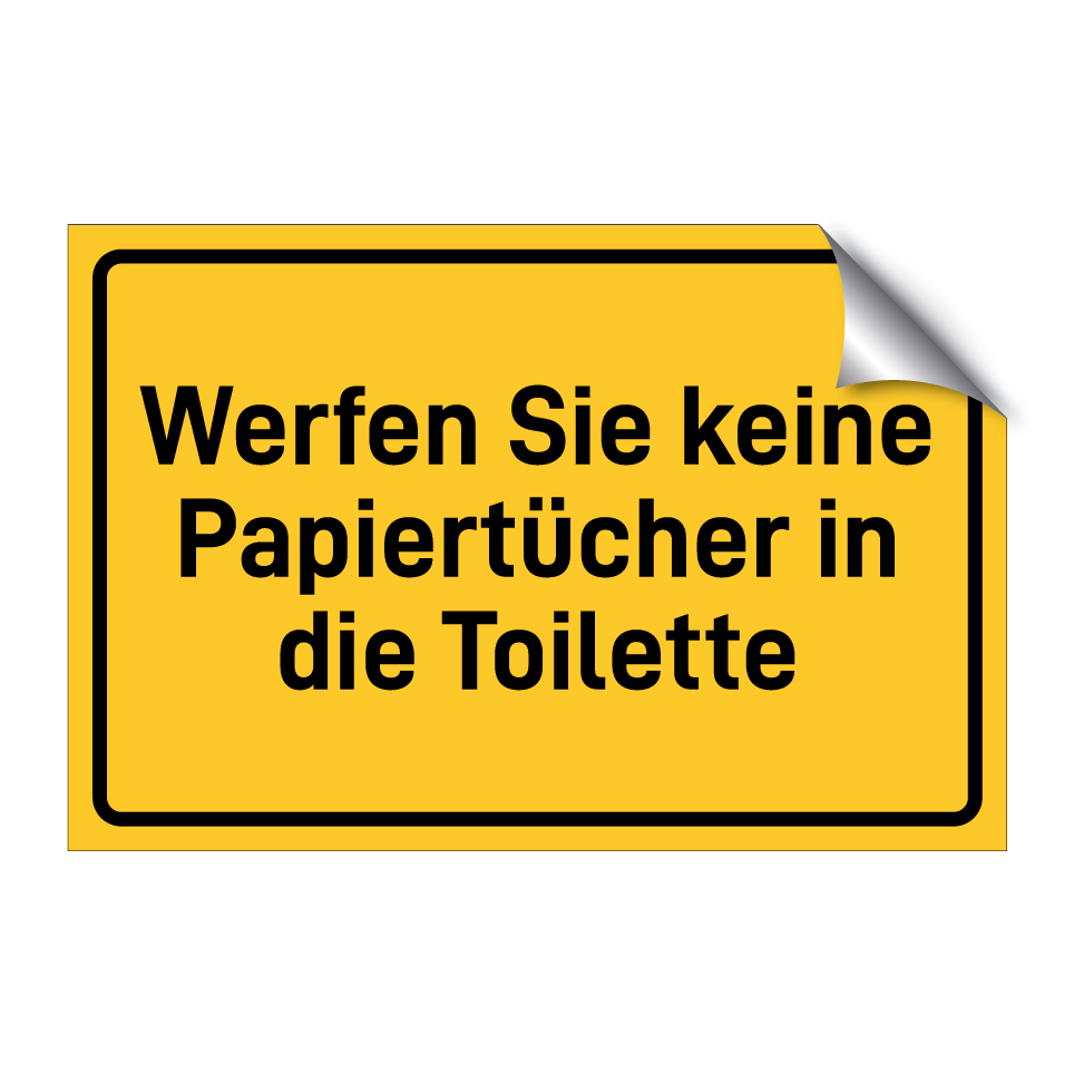Hinweisschild mit dem Text Werfen Sie keine Papiertücher in die Toilette