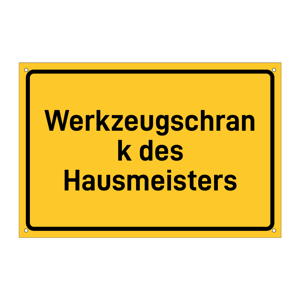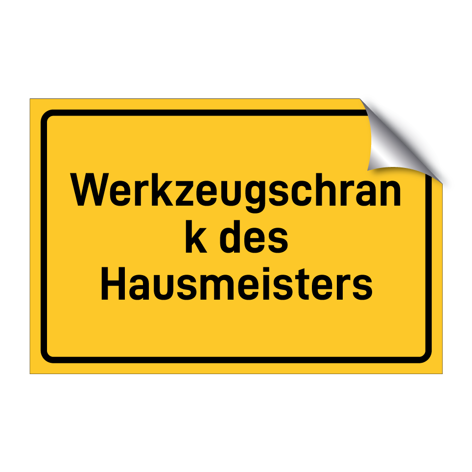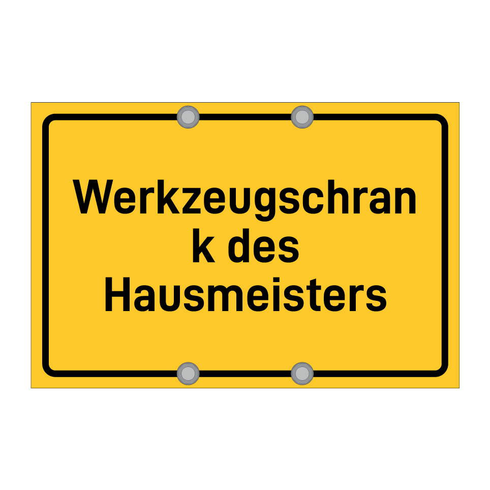 Hinweisschild mit dem Text Werkzeugschrank des Hausmeisters