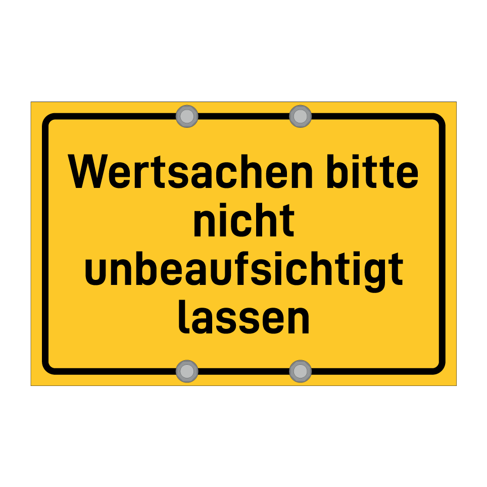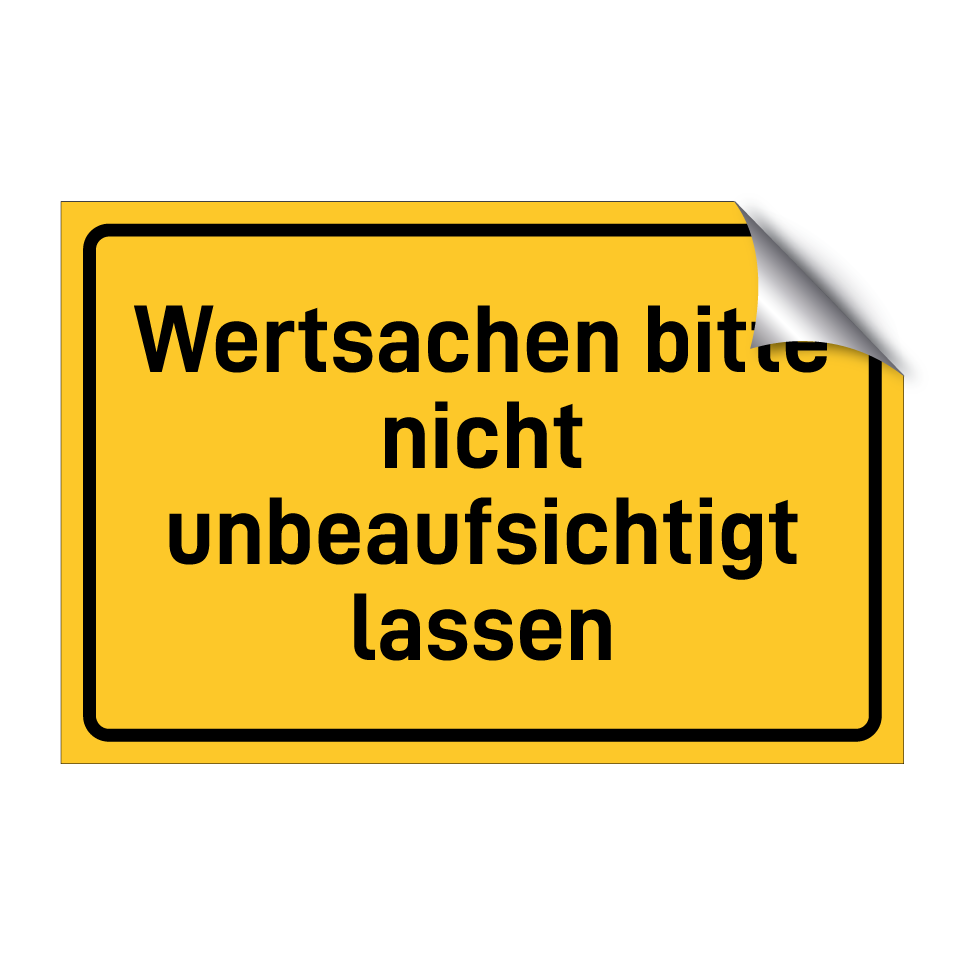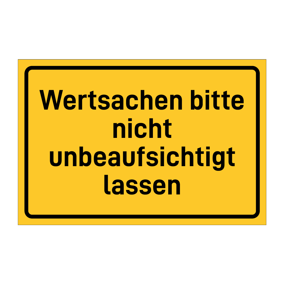 Hinweisschild mit dem Text Wertsachen bitte nicht unbeaufsichtigt lassen