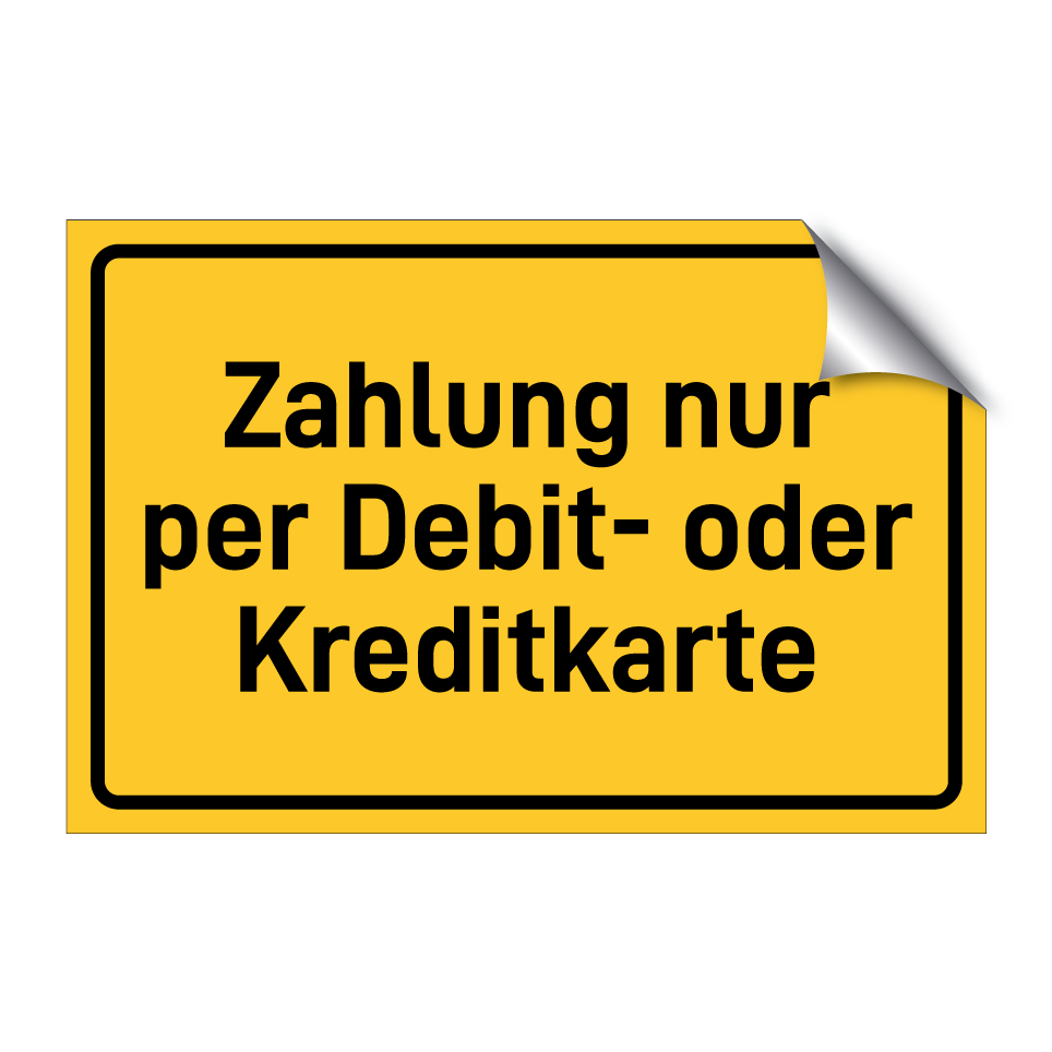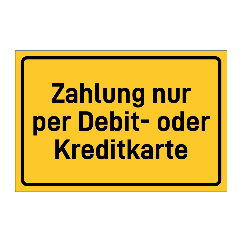 Hinweisschild mit dem Text Zahlung nur per Debit- oder Kreditkarte