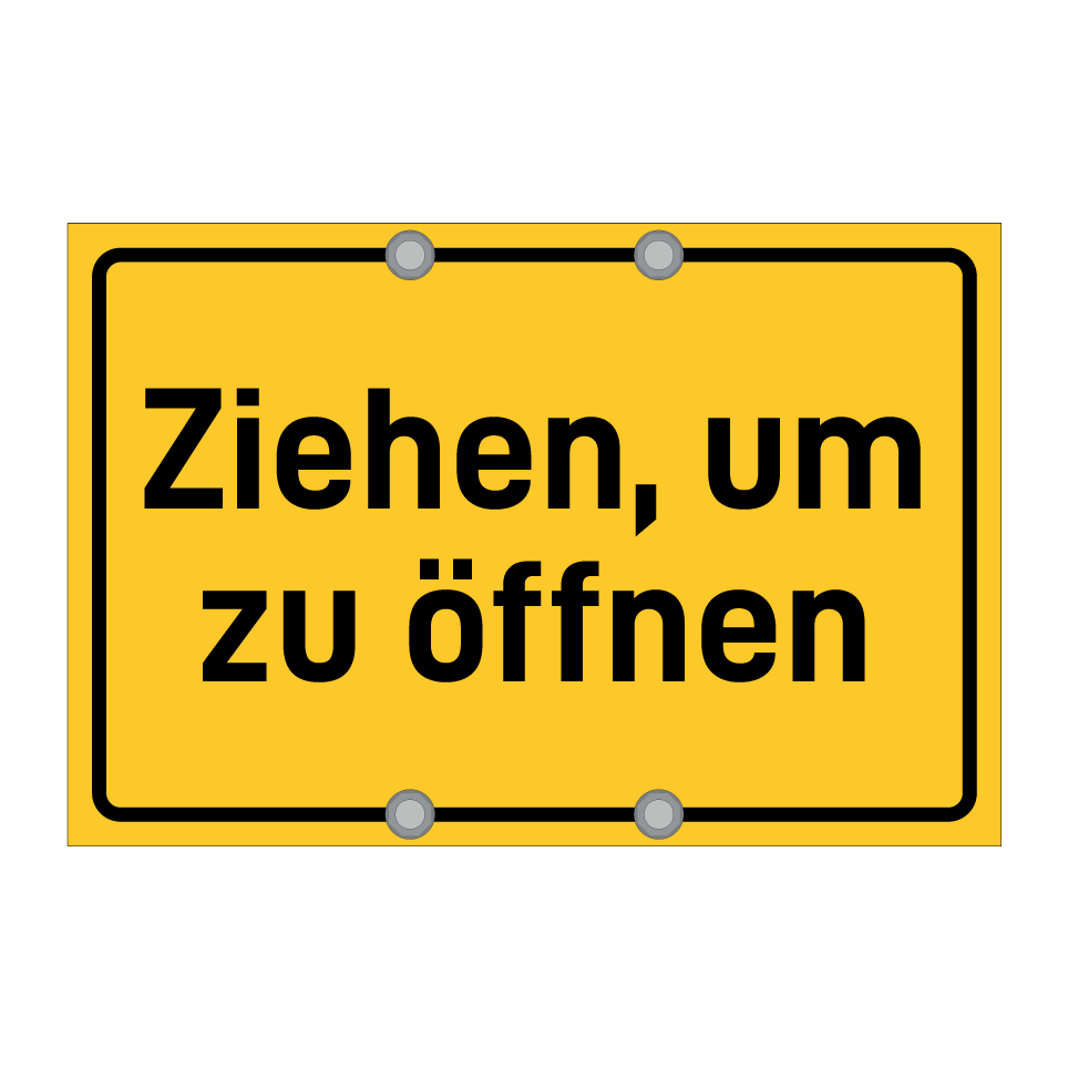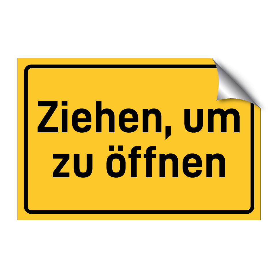 Hinweisschild mit dem Text Ziehen, um zu öffnen