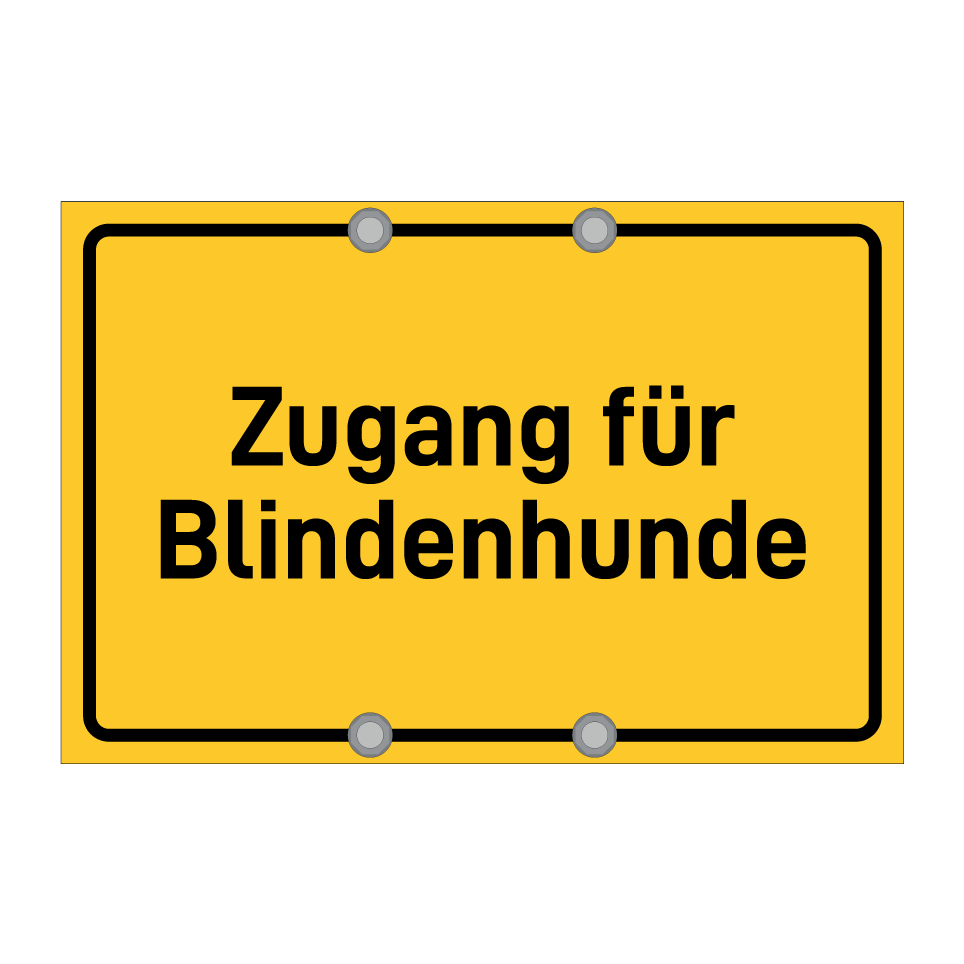 Hinweisschild mit dem Text Zugang für Blindenhunde