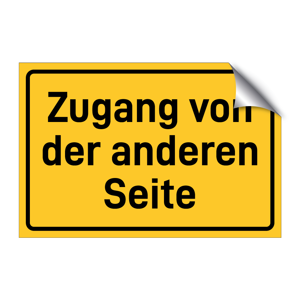 Hinweisschild mit dem Text Zugang von der anderen Seite