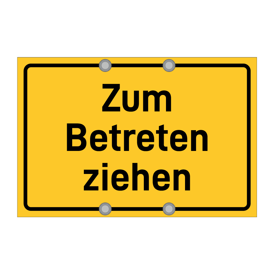 Hinweisschild mit dem Text Zum Betreten ziehen