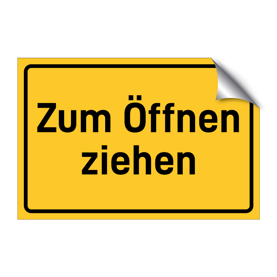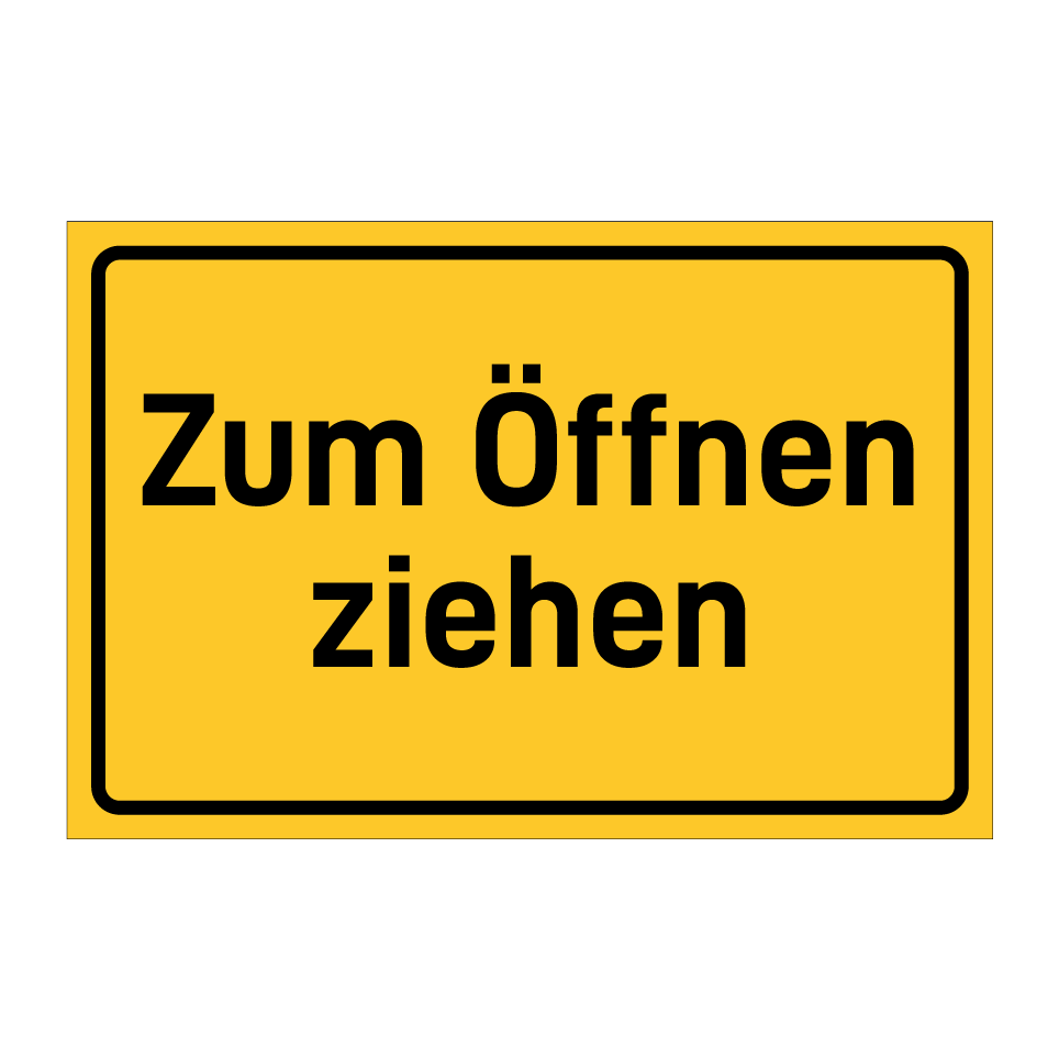 Hinweisschild mit dem Text Zum Öffnen ziehen